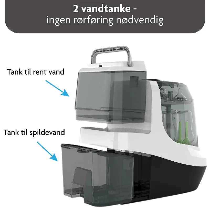 – Miljøvenlig: bruger 50 % mindre vand end håndvask