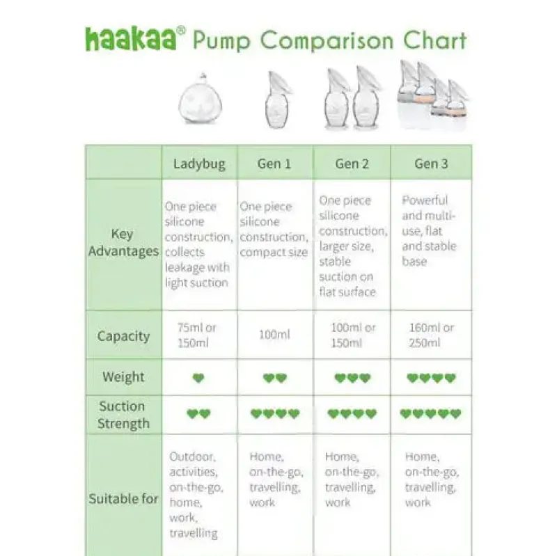 Den smarte Haakaa brystpumpe er lavet af 100% silikone og tilbyder dig den nemmeste og mest effektive udmalkningsoplevelse. Her får du overover brystpumpen, 1 blomsterstopper, 1 låg og 36 stk superbløde engangsammeindlæg.