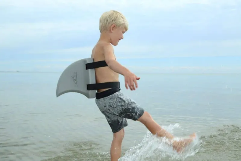 SwimFin Hajfinne – Lys Grå. Svømmefinnen fra Swimfin spændes på ryggen og er en genial måde at hjælpe barnet til at svømme naturligt på. Finnen er designet til at generere opdrift, og hjælper derved barnet til at holde sig ovenvande – helt uden at hæmme barnets bevægelser og leg.