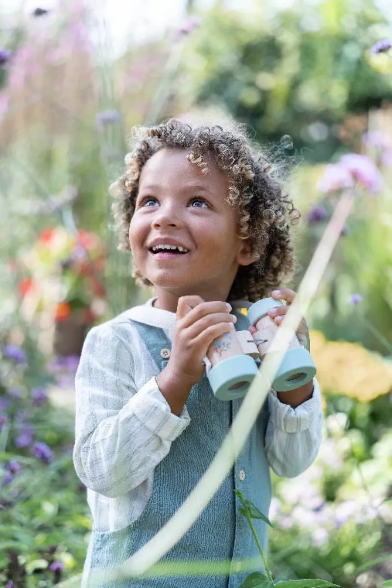 Udforsk naturen med denne kikkert i træ! Kikkerten er dekoreret med smukke farver og illustrationer fra Forest Friends-temaet og gør ethvert eventyr spændende. Den forstørrer virkelig og kan justeres til afstanden mellem dine øjne, så du får et optimalt syn. Bomuldssnoren med velcrolukning sikrer, at kikkerten hænger sikkert om halsen. Ideel til nysgerrige opdagelsesrejsende, som vil udforske verden omkring sig!