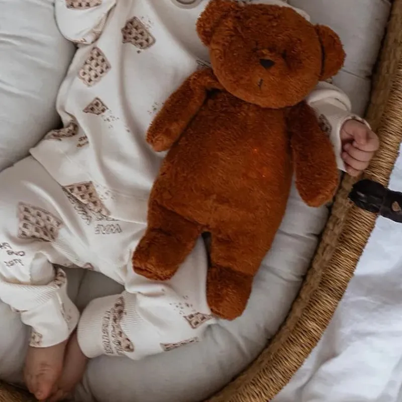 LED-lampen varmer ikke op, den er helt sikker. Lampen til den brummende MOONIE-bjørn er også fantastisk til større børn, som ofte har mareridt og er bange for mørket. Du kan tænde selve natlampen uden lyd og lade den være tændt hele natten.