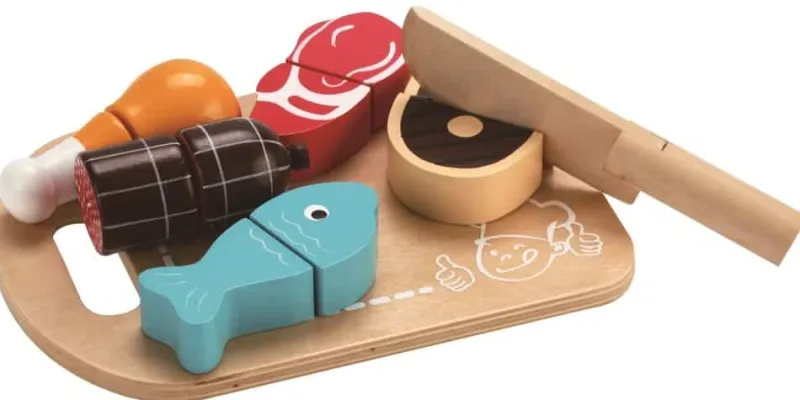 New Skærebræt med kød Trælegetøj|Træmad