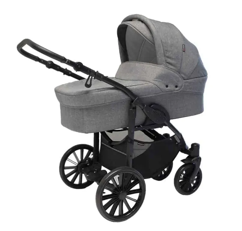 ”Nordic Lite barnevognen har alt det en god basis barnevogn skal have. Den er rummelig og har et liggemål på 97 cm. Sammen med det populære Nordic stel med drejelige forhjul og komfortable PU-hjul, danner denne vogn grobund for en god start på livet i barnevogn. Nordic Lite har desuden vaskbart bomuldsinderfor, en madras og et kraftigt overlæder. Føres i farverne sort og lys grå melange. Basis lift og taske kan tilkøbes i matchende farver.