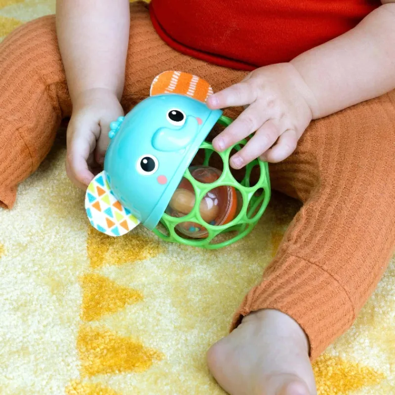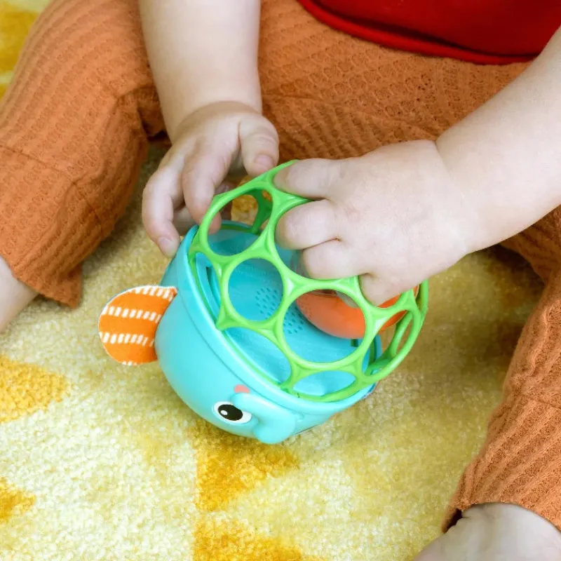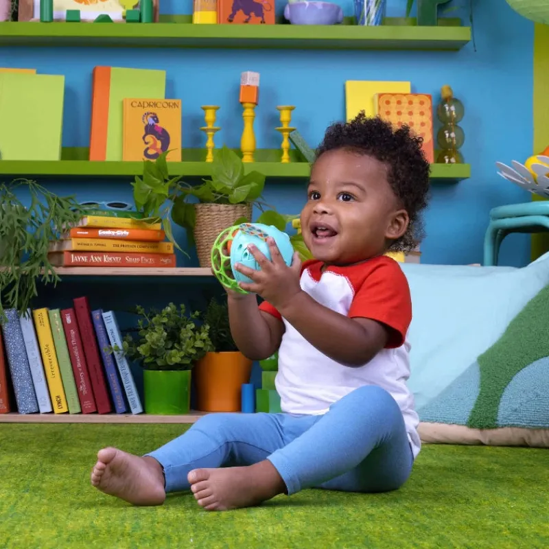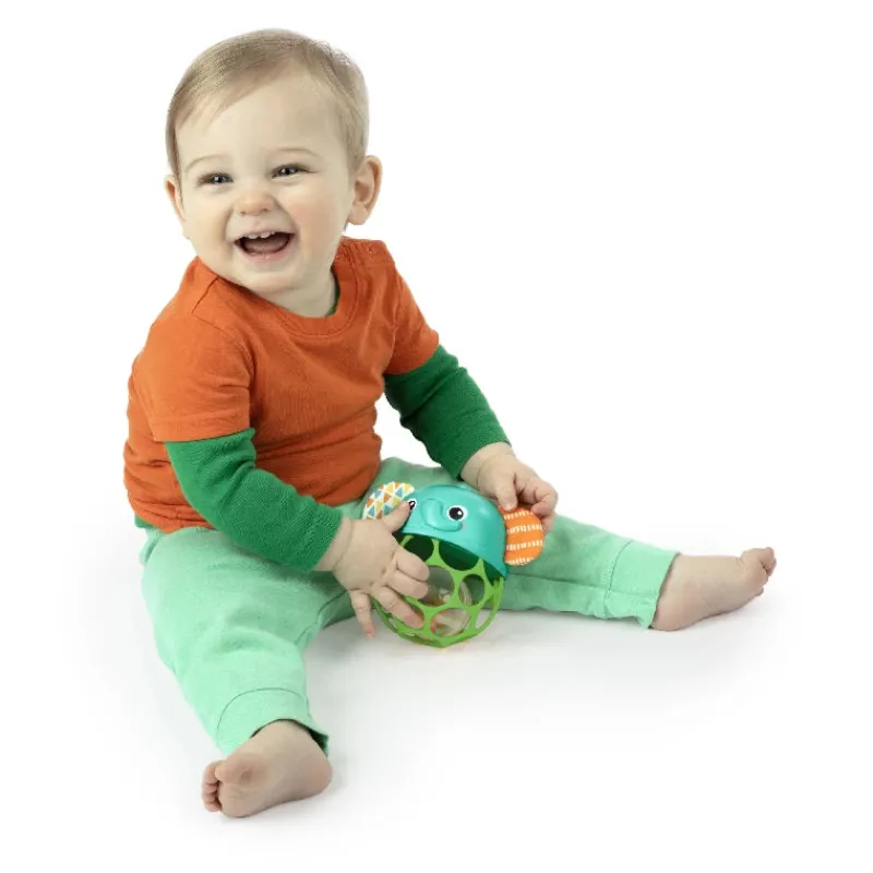 Bright Starts’ fleksible og holdbare Oball-teknologi fremmer babyens finmotorik, og de mange fingerhuller gør dette legetøj let for små babyer at gribe og lege med.
