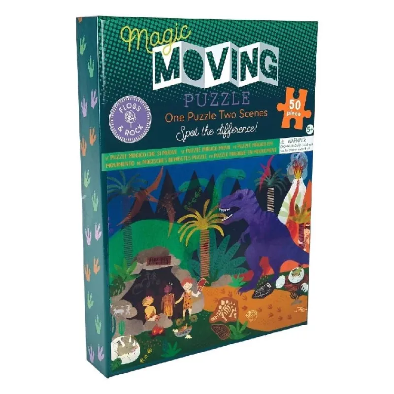 Forbered dig på at blive blæst bagover af vores fantastiske Magic Moving Puslespil! Du vil have så meget sjov med den magiske overflade, der får den fantastisk T-rex, store Stegosaurus og meget andet bevæge sig lige foran dine øjne. Fuldfør puslespillet med 50 store, tykke puslespilsbrikker, og når det er færdigt, kan du have det endnu sjovere med at flytte det fra side til side for at få magien til at ske!