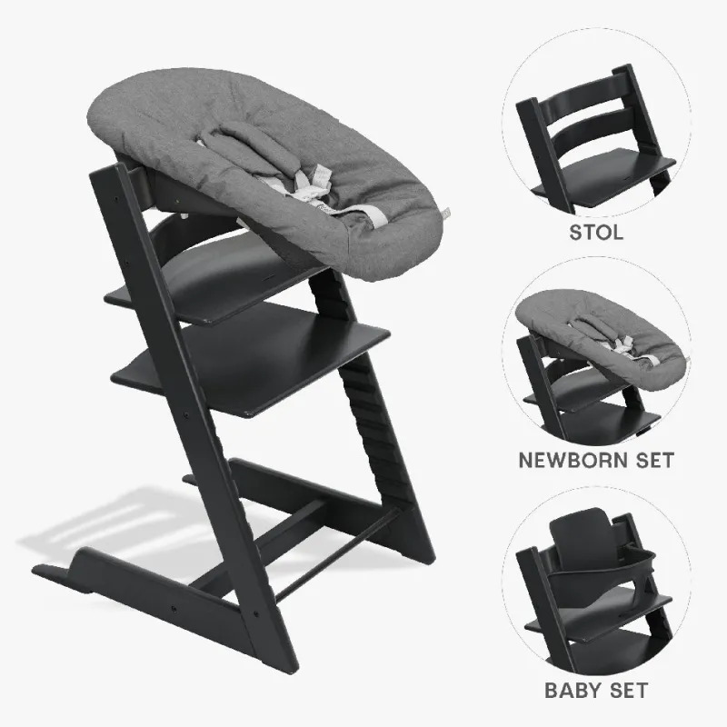 Selv den mindste i familien kan sidde med ved spisebordet med et Tripp Trapp® Baby Set², der følger med denne sampak. Det giver dit barn bevægelsesfrihed og hjælper det med at lære den vigtige færdighed at sidde. Når dit barn selv kan klatre op og ned fra stolen, kan du fjerne dit Baby Set. Det giver barnet større bevægelsesfrihed og mere selvstændighed.