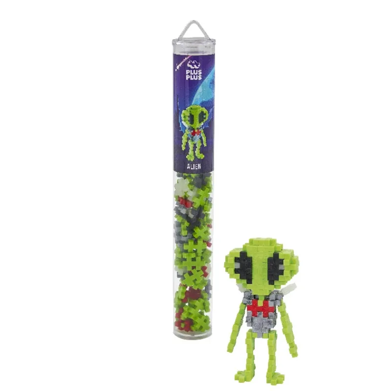 Dette Plus-Plus produkt indeholder 100 Plus-Plus i et genanvendeligt og rejsevenligt rør der gør det nemt at opbevare dine Plus-Plus og tage dem med på farten! Byg et sejt rumvæsen! Produktet er naturligvis kompatibelt med alle andre Plus-Plus-produkter. Ikke egnet til børn under 3 år på grund af små dele.
