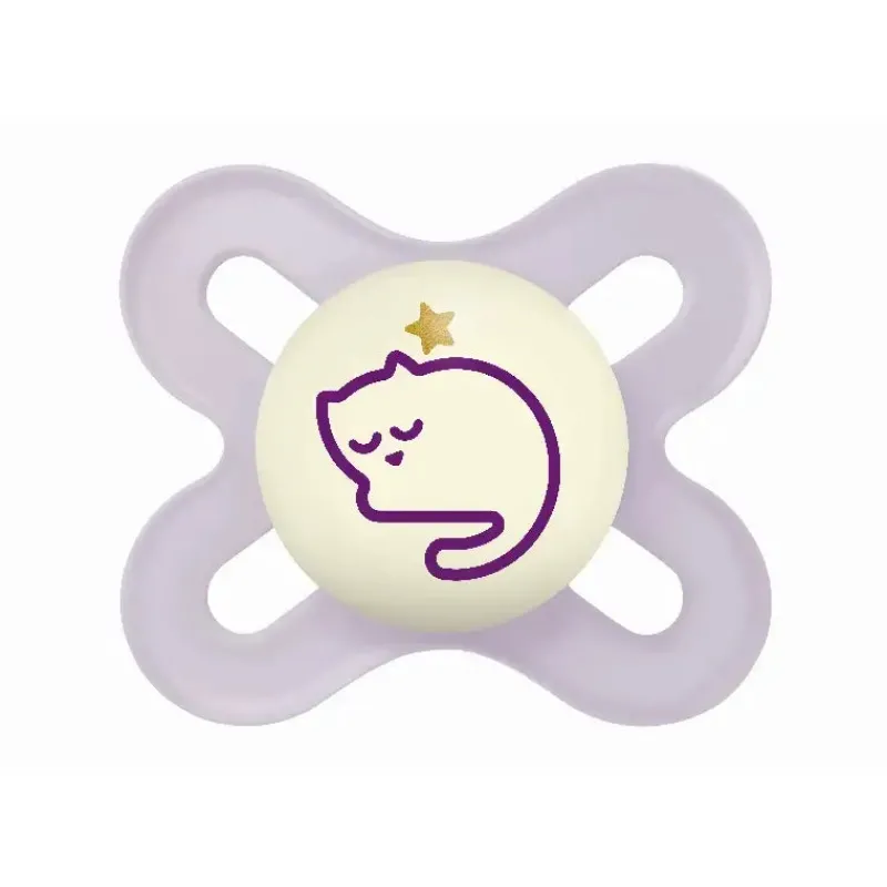 MAM Original Start Night er en ekstra lille og let sut, der passer til de mindste babyer. Sutten er hudvenlig takket være store lufthuller og MAM’s unikke knoppede inderside. Sutten er lavet af silkeblød silikone, MAM Skin SoftTM, som føles blød og velkendt ligesom mors hud og accepteres af 94 % af babyerne*. MAM Start Night leveres i en praktisk opbevarings- og steriliseringsboks, som gør det nemt at sterilisere sutten i mikrobølgeovnen. Med sin selvlysende knop er MAM Original Start Night nem at finde i mørket – for nemmere nætter.