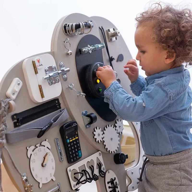Sjovt og den aktivitetstavle med flest elementer!. Denne model monteres på væggen.