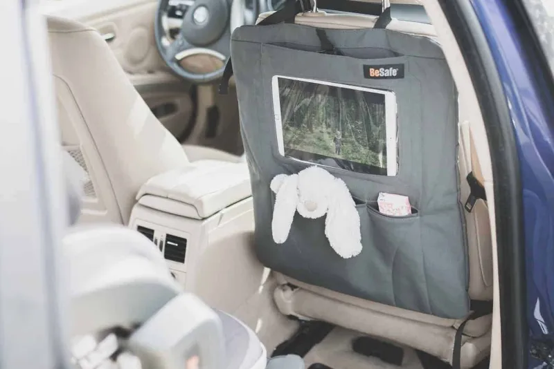BeSafe tabletholder & sædebeskytter beskytter bilsædet mod fodaftryk og snavs, og er meget nem at rengøre. Den kan justeres i højden og passer derfor til alle bilsæder. Da den er i to dele, kan den både bruges til bagsædet og til bagsiden af forsædet.