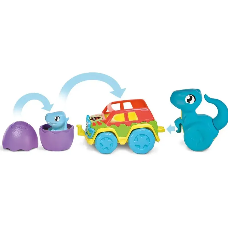 Toomies giver fascinationen af dinosaurer videre til en ny generation med Jurassic World Chase & Roll Raptors! Dette dinosaurlegetøj er klar til eventyr og designet til at fremme udviklende leg for babyer og små børn. Lær om handling og reaktion ved at ryste Baby Raptor og lytte efter den søde knurren! Se Mor Raptors hale bevæge sig, mens du skubber hende. Sæt Baby Raptor ind i bilen og giv hende en sjov tur, og forbind derefter mor-dinosauren til bilen for ekstra skubbe-sjov, der motiverer kravleleg. Uanset hvordan du vælger at lege, byder Toomies små opdagelsesrejsende velkommen til en Jurassic World fuld af sjov! Fra 12 mdr.