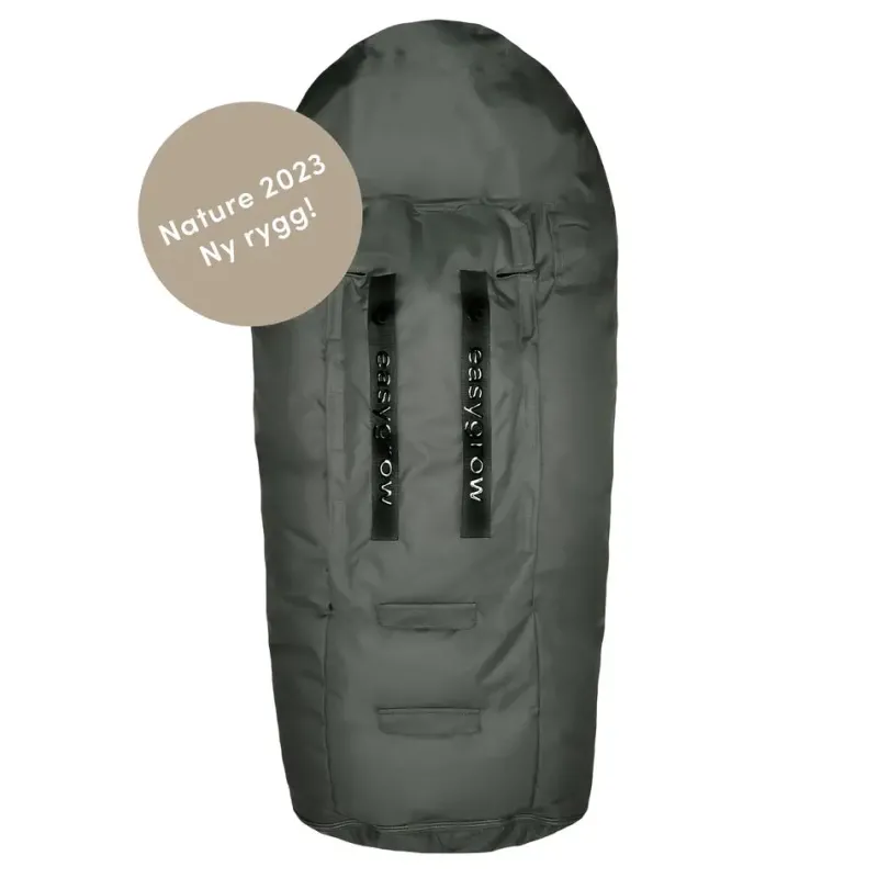 Velcroåbninger i ryggen, så den passer til alle vogne og seletyper