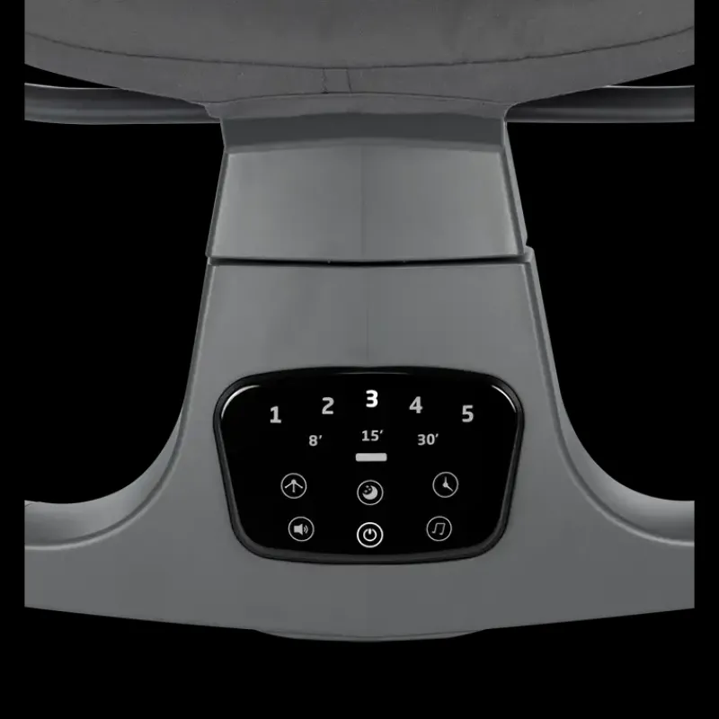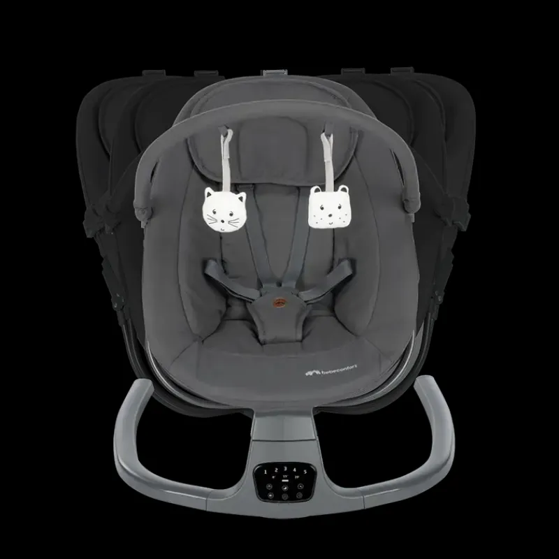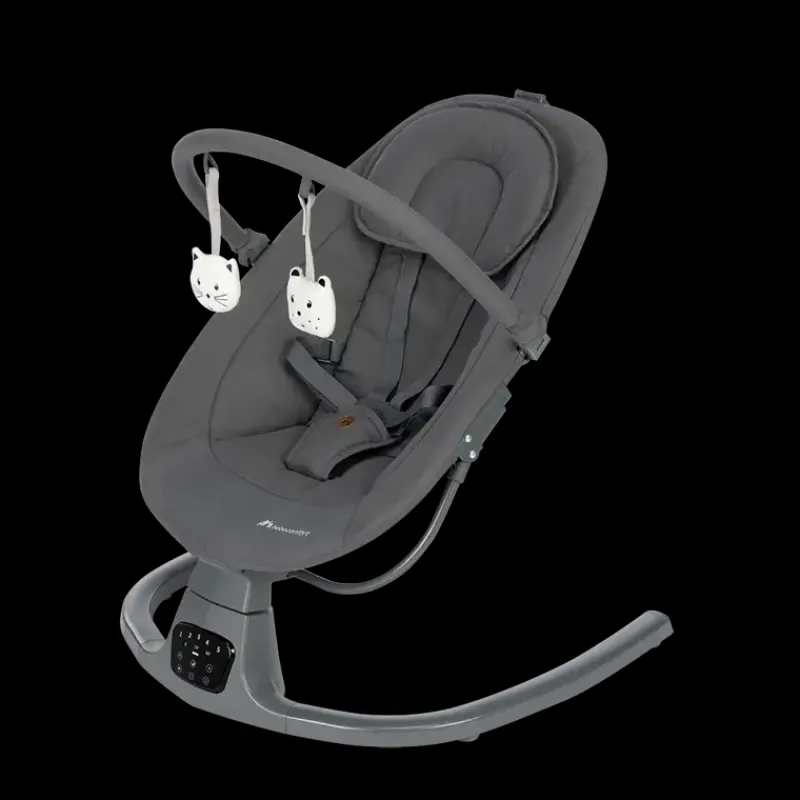 Skråstol med automatisk bevægelses sensor. Når arnet begynder at bevæge sig, så vil stolen automatisk begynde at rokke fra side til side. Kan afsille 12 sange og 5 naturlige lyde. Blødt stof og ekstra hovedstøtte. 2 hvile positioner.
