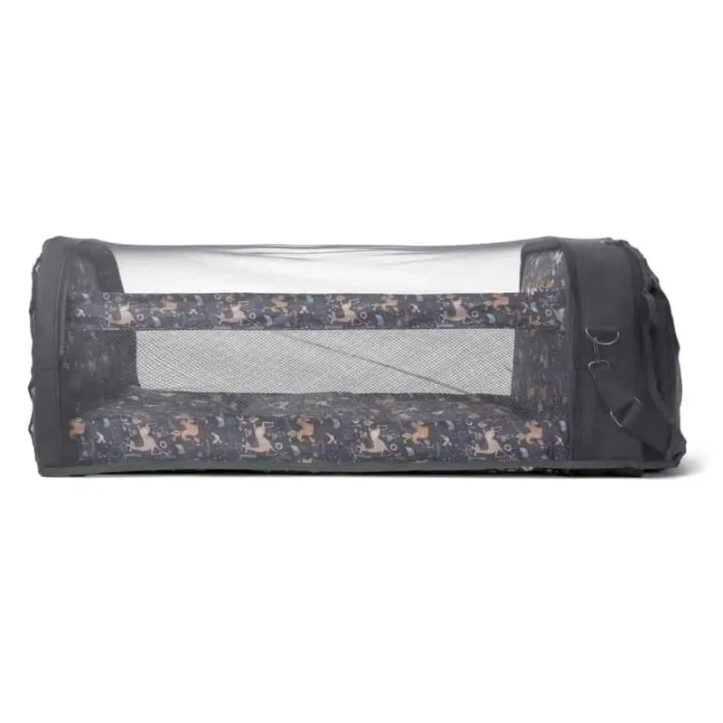 Konverteres til seng på under 1 minut Ved at bruge de medfølgende letvægtsstænger til at sikre siderne, kan din baby sove sikkert og komfortabelt i den udfoldelige sengesektion. Samlingen af sektionen tager mindre end et minut! En polstret madras følger med tasken og kan bruges som underlag i rejsesengen eller som pusleunderlag.