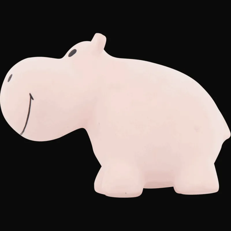 En sød lille gummi flodhest. Den er fantastisk til små ømme tænder og nemt for barnet at gribe og klemme om. Produktet har en lille klokke, der laver små ranglelyde som vil glæde og underholde de små. Produktet er Fremstillet af naturgummi, der høstes fra gummitræer, med en 12-årig livscyklus. BPA og phtalates fri.