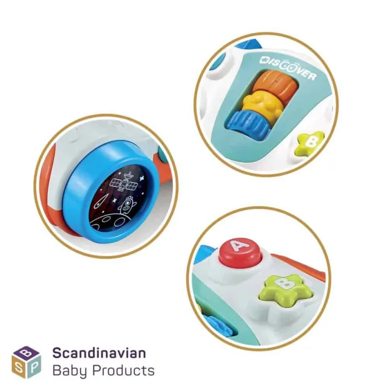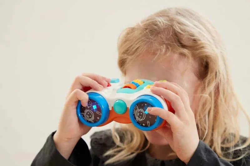 Legekikkerten fra Scandinavian Baby Products er fyldt med sjov og leg. Kikkerten kan lyse børneværelset op om aftenen med sjove illustrationer. Kikkerten kan afspille musik, toner og sjove dyrelyde.