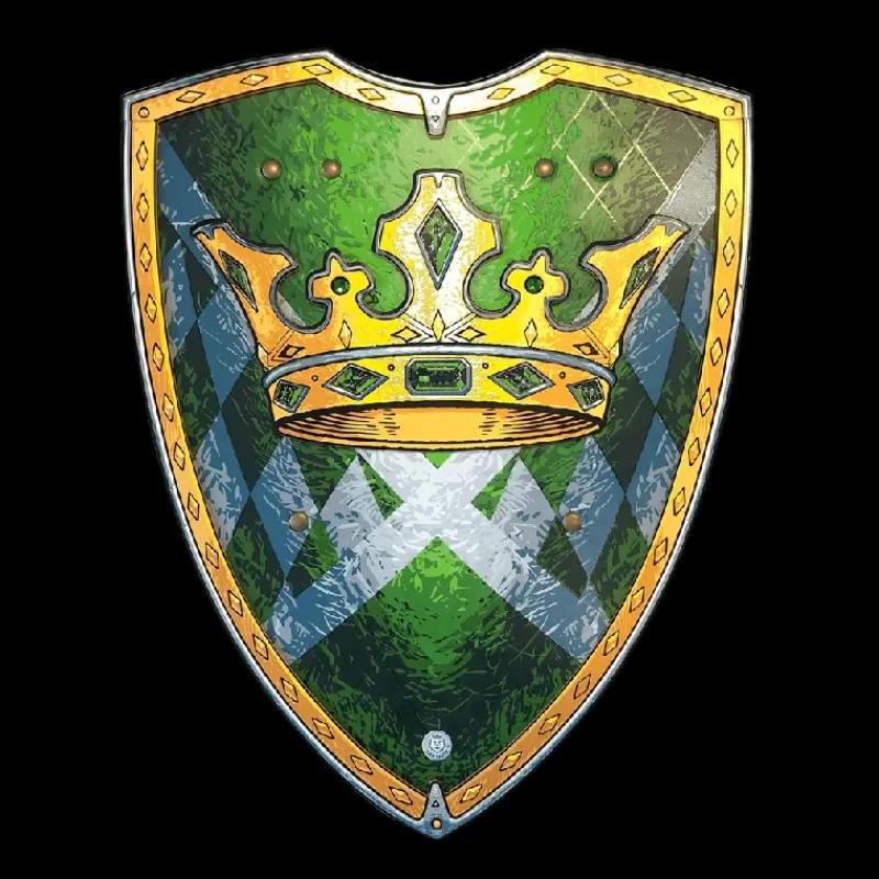 Der er store kræfter på spil, og derfor er det vigtigt altid at være beredt og beskyttet. Skjoldet er dekoreret med Kingmaker-kronen på en smaragdgrøn baggrund, der kombineres med klassiske engelske Kingmaker-tern, som symboliserer autoritet og tradition.