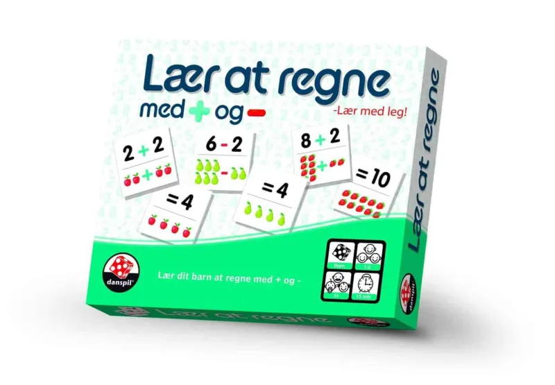 Lær med leg er en serie af spil, hvor børn netop lærer gennem leg. Spillene er en sjov og tryg måde at stifte bekendtskab med tal og bogstaver for børn i førskolealderen. Gennem spillene får børnene udviklet deres logik og koncentrationsevne. Med dette spil kan du lære dit barn om plus og minus med simple regnestykker. Spilletid ca. 15 min. For 1-2 spillere. Fra 5 år.