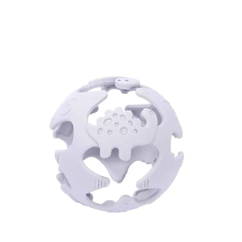 Bold produceret af 100% fødevaregodkendt silikone. Fleksibel og nem at gribe fat om. 4 dinosaurer gør bolden sjov at undersøge, og stimulerer baby’s føle og synssans. Blød silikone gør den behagelig at lege med, og masserer nænsomt babys ømme gummer under tandfrembrud. Egnet fra 4 mdr.